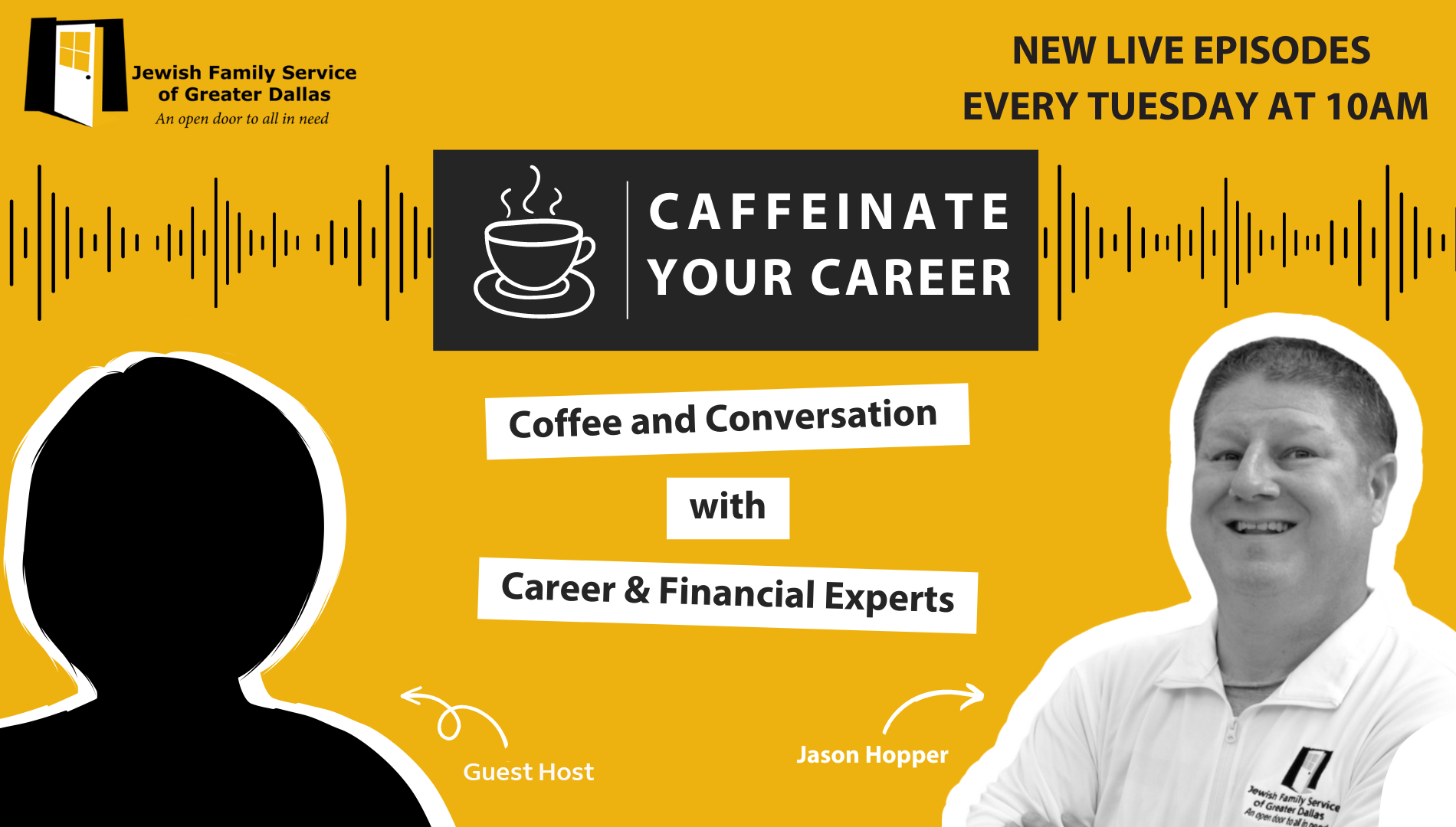 It’s easy to join us live! Go to the JFS Dallas home page on LinkedIn, and click the follow button. Click the tab for events, and find Caffeinate Your Career, and click the “attend” button. You’re done! You’ll be notified at 10:00 CST when we go live and you can chat any questions to us! Or just hang out in the chat and network with others!